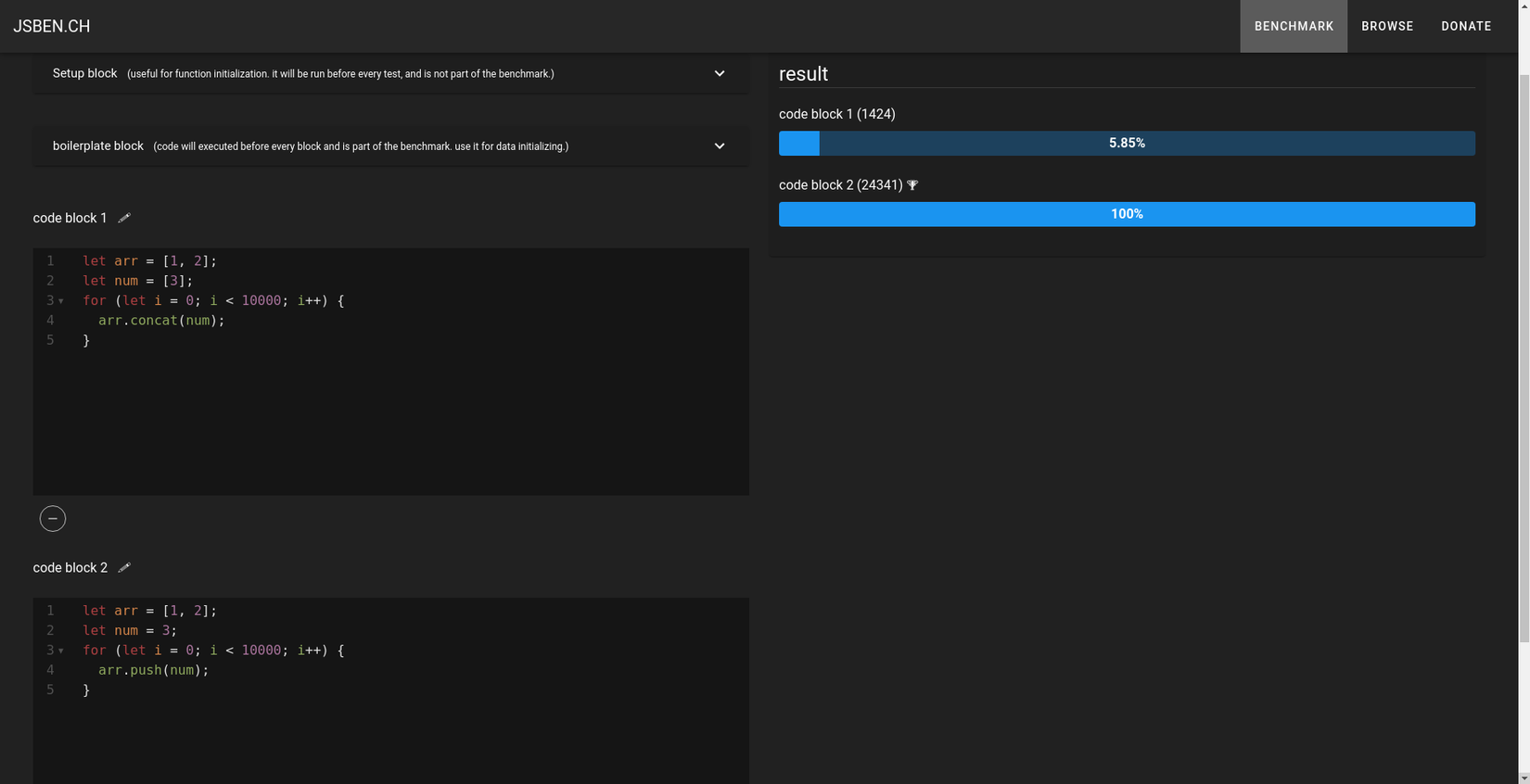 Về performance thì push hơn hẳn so với concat