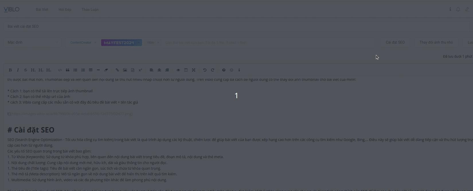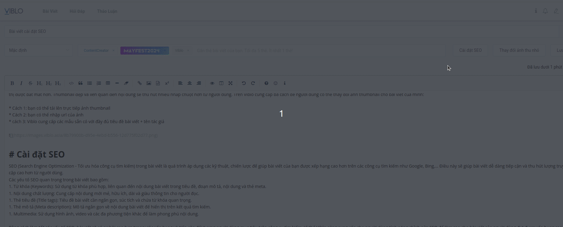 Trong trang viết bài, người dùng có thể click vào button Cài đặt SEO để có thể tiến hành chỉnh sửa Thẻ tiêu đề và Thẻ mô tả . Ở đây Viblo cũng có gợi ý về độ dài lý tưởng cho cả phần tiêu đề và phần mô tả của bài viết, cũng như hiển thị chế độ xem trước cả trên máy tính cũng như trên thiết bị di động, để người dùng dễ dàng hình dung được nội dung mà họ chỉnh sửa sẽ được hiển thị như thế nào.