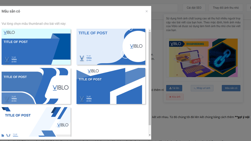 - Cách 3: sử dụng một trong các mẫu thumbnail có sẵn do Viblo cung cấp, với đầy đủ tiêu đề bài viết + tên tác giả