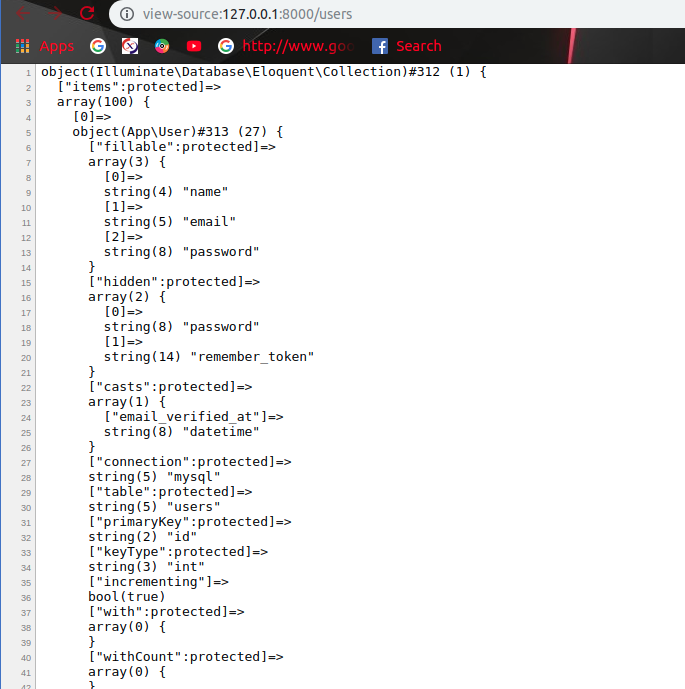 Một điều đặc biệt các bạn sẽ thấy đó chính là khi gặp hàm var_dump() chương trình của chúng ta không dừng mà vẫn chạy tiếp cho đến đoạn return $users. Vì thế khi muốn dừng thì các bạn phải kết hợp với die() nhé