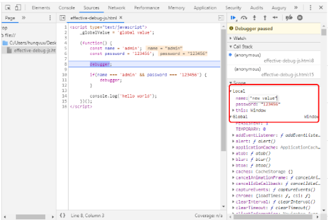 6. Sửa giá trị của biến và tìm scope của một function ngày trong debugger