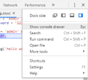 Nếu như bạn không thấy cửa sổ Console khi debug thì hãy click vào nút 3 chấm phía trên cùng bên phải của Inspector và chọn Show console drawer là bạn sẽ có ngay một cửa sổ Console để debug.