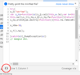 Các bạn có thể format các file bị minify bằng cách chọn một file và click vào nút Pretty print như trong hình nhé.