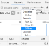 Bạn có thể vào tab Network và chọn nút Online như trong hình, browser sẽ giúp chúng ta mô phỏng các tình trạng internet khác nhau của người dùng.