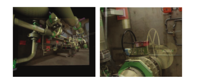 AR có thể được sử dụng để phân tích sự khác biệt trong các cơ sở công nghiệp. Những hình ảnh này cho thấy các khung hình vẫn phủ thông tin CAD.