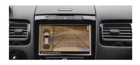 Hình dưới cho thấy một trợ lý đỗ xe, chồng lên một hình ảnh đồ họa của quỹ đạo xe vào tầm nhìn của camera gắn phía sau.