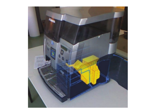 Hình dưới cho thấy AR có thể hỗ trợ loại bỏ bộ phận pha cà phê của máy pha cà phê tự động
