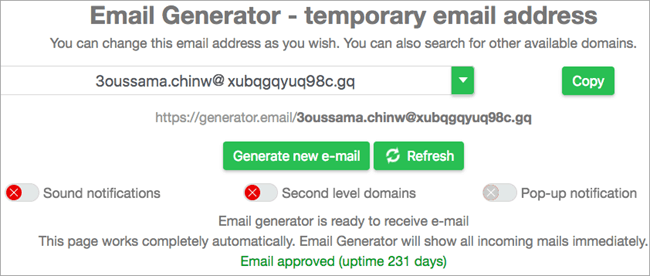 - Email Generator cung cấp 231 ngày thời gian hoạt động cho email.