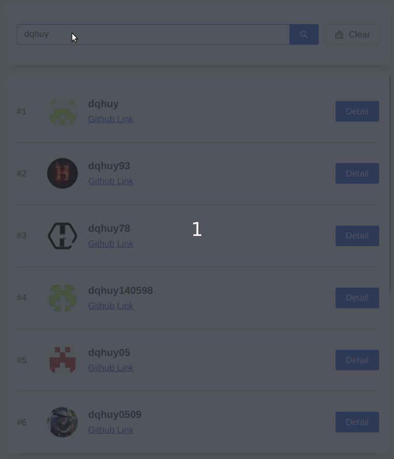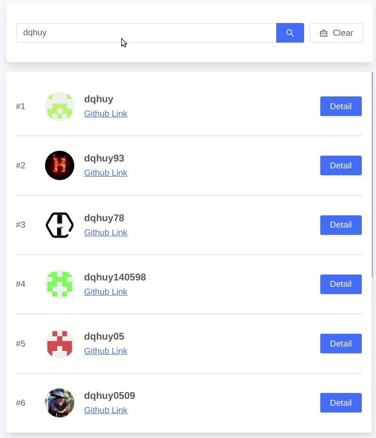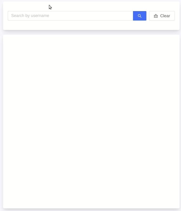 Một trạng thái nữa của dữ liệu mà bạn cũng nên thêm vào đó là trường hợp không có dữ liệu nào để hiển thị. Điển hình ở đây là trong trường hợp bảng dữ liệu của bạn cho phép người dùng có thể tìm kiếm, nếu từ khóa mà người dùng tìm kiếm có trả về kết quả thì mọi thứ đều ổn và không có vấn đề gì cả như trường hợp dưới đây: