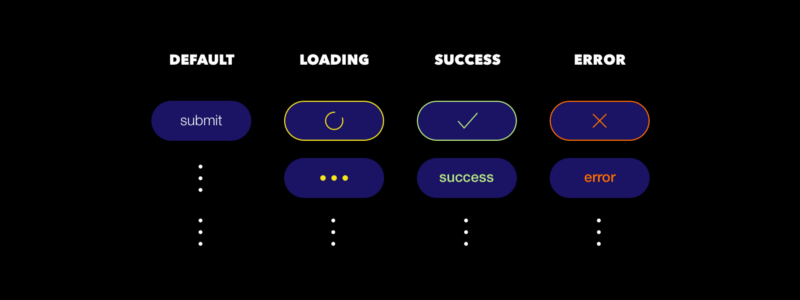 Như bạn thấy qua phần này, điều chúng ta nên chú ý hơn đó là UI không phải chỉ có một trạng thái duy nhất giống như trong design thiết kế mà khi người dùng tương tác với UI của chúng ta thì ta cần làm gì đó để phản hồi lại rằng tương tác của người dùng đã thành công và hệ thống đang thực hiện.