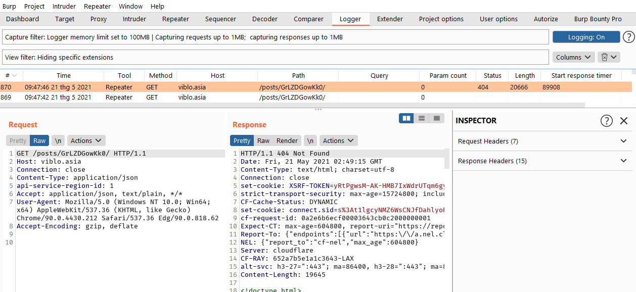 Tính năng này thì mới được đưa vào gần đây thôi, ngày xưa mình dùng extension Flow để đọc log, nhưng PortSwigger đã đưa tính năng này vào global luôn. Nó sẽ ghi lại toàn bộ các request được bắt từ Proxy, hay những request mình sử bên repeater, hay những request chạy bên intruder. Nói chung là log lại hết, rất tiện cho việc search lại các param hay kết quả mình cần phải lọc ra hay đọc lại.