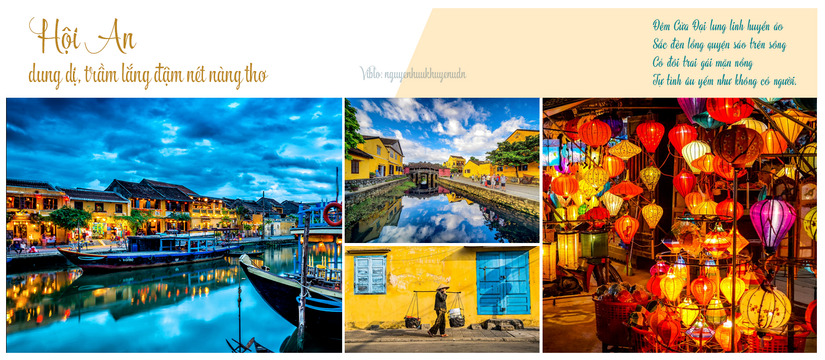 Chẳng phải tự nhiên mà người ta nói Hội An về đêm thật đẹp. Cái đẹp không phải của ánh nắng sớm mai hay của chiều hoàng hôn đỏ rực, mà là cái đẹp của ánh đèn vàng nơi đường vắng, của ngọn lửa lênh đênh của những dải hoa đăng mang theo bao tâm tư chảy dài đến nơi chùa Cầu. Là nét đẹp của lao động, của những con người vất vả mưu sinh, chất phác trong hình ảnh cụ ông đội chiếc nón lá xuôi mái chèo để đưa du khách tham quan nơi quê hương thơ mộng của mình.