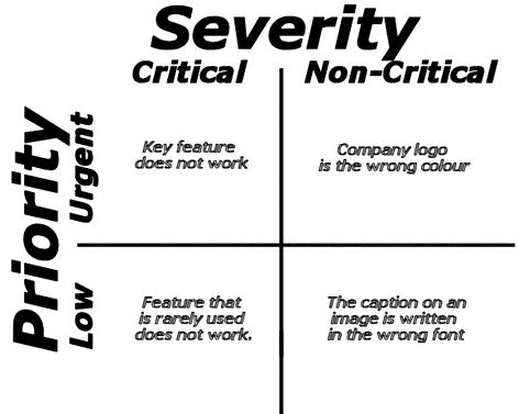 Mức độ nghiêm trọng được đánh giá bởi người kiểm thử trong khi độ ưu tiên được đánh giá bởi người quản lý sản phẩm hoặc nhóm phân loại. Để phân loại độ ưu tiên, bắt buộc người kiểm thử phải chọn đúng mức độ nghiêm trọng.