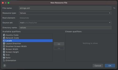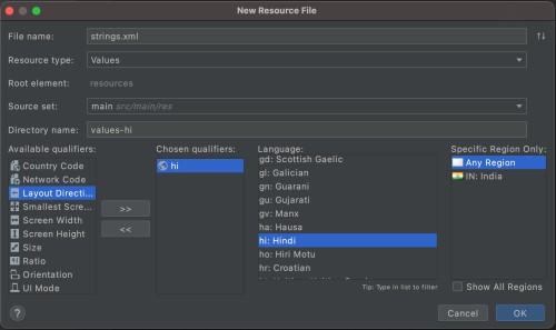 Theo mặc định, bạn có tiếng Anh làm ngôn ngữ mặc định cho toàn bộ ứng dụng và văn bản tương ứng với ngôn ngữ tiếng Anh sẽ có trong tệp string.xml của chúng tôi. Vì vậy, tương tự, đối với các ngôn ngữ khác, bạn cần thêm tệp string.xml của chúng.