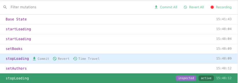 Vì vậy, mutating làm thay đổi giá trị của state.loading sẽ tạo ra một vaì log entry trong devtools.