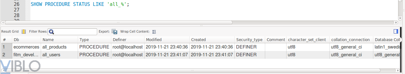 SHOW PROCEDURE STATUS [LIKE 'pattern' | WHERE search_condition];