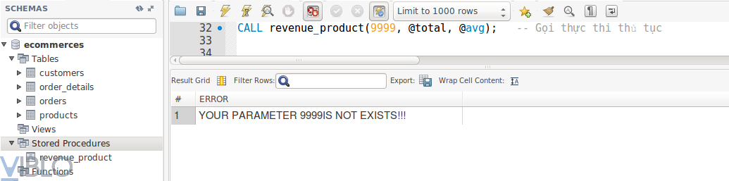 -- Hiển thị message lỗi: YOUR PARAMETER XXX IS NOT EXISTS!!!