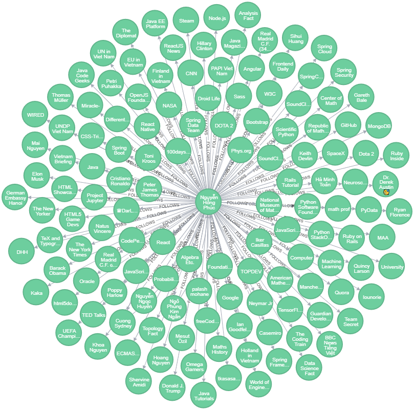 Tiếp nối 2 bài viết về Neo4j trong quá khứ Bài 1, Bài 2, bài viết này sẽ dùng Neo4j để xem dữ liệu cá nhân tài khoản Twitter của mình.