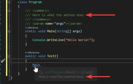 Như mình dùng VS, sau khi comment, lúc gọi tới hàm, chỉ vào là thấy hàm này làm gì