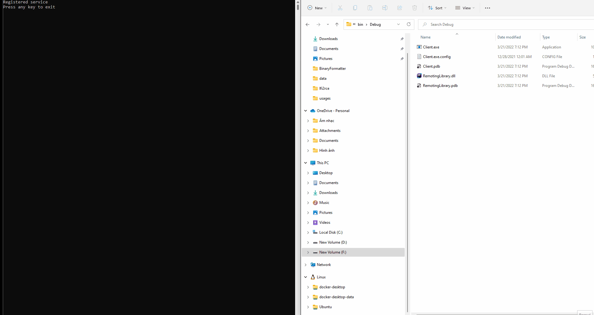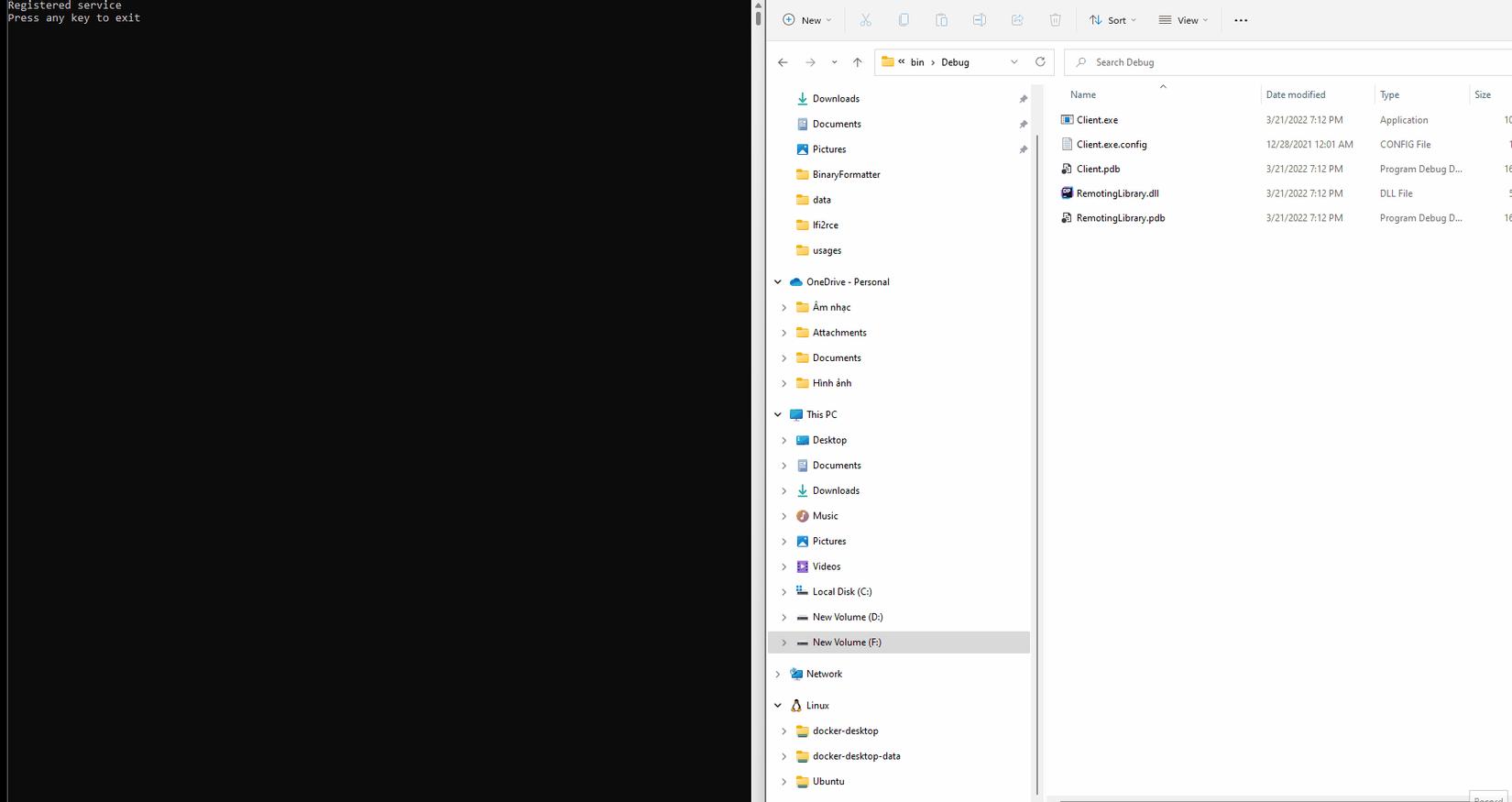 Sau khi build project chúng ta có file thư viện RemotingLibrary.dll, Server.exe và Client.exe