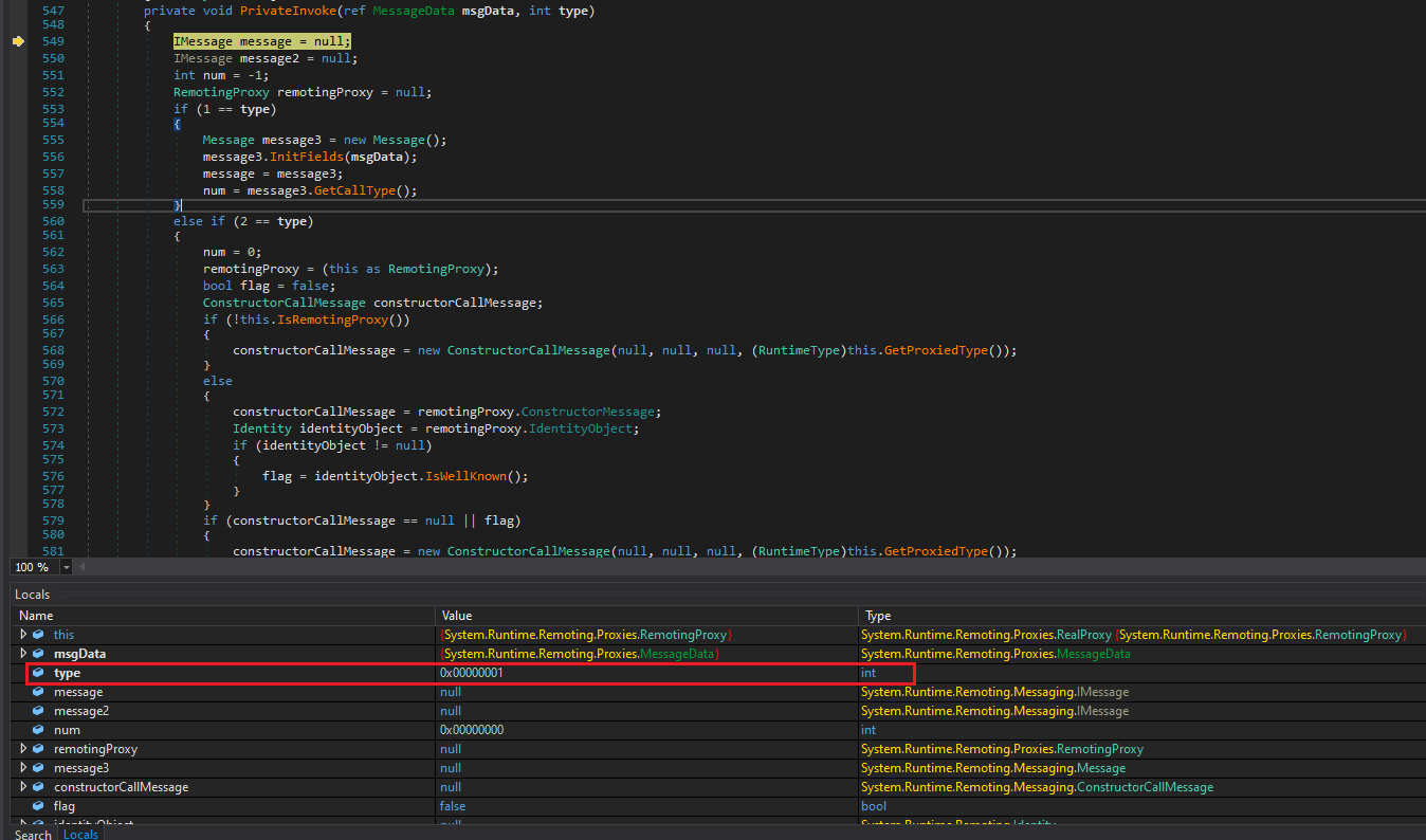 Console.WriteLine("Result of Deser: {0}", remoteMathObject.Deserialize(payload));