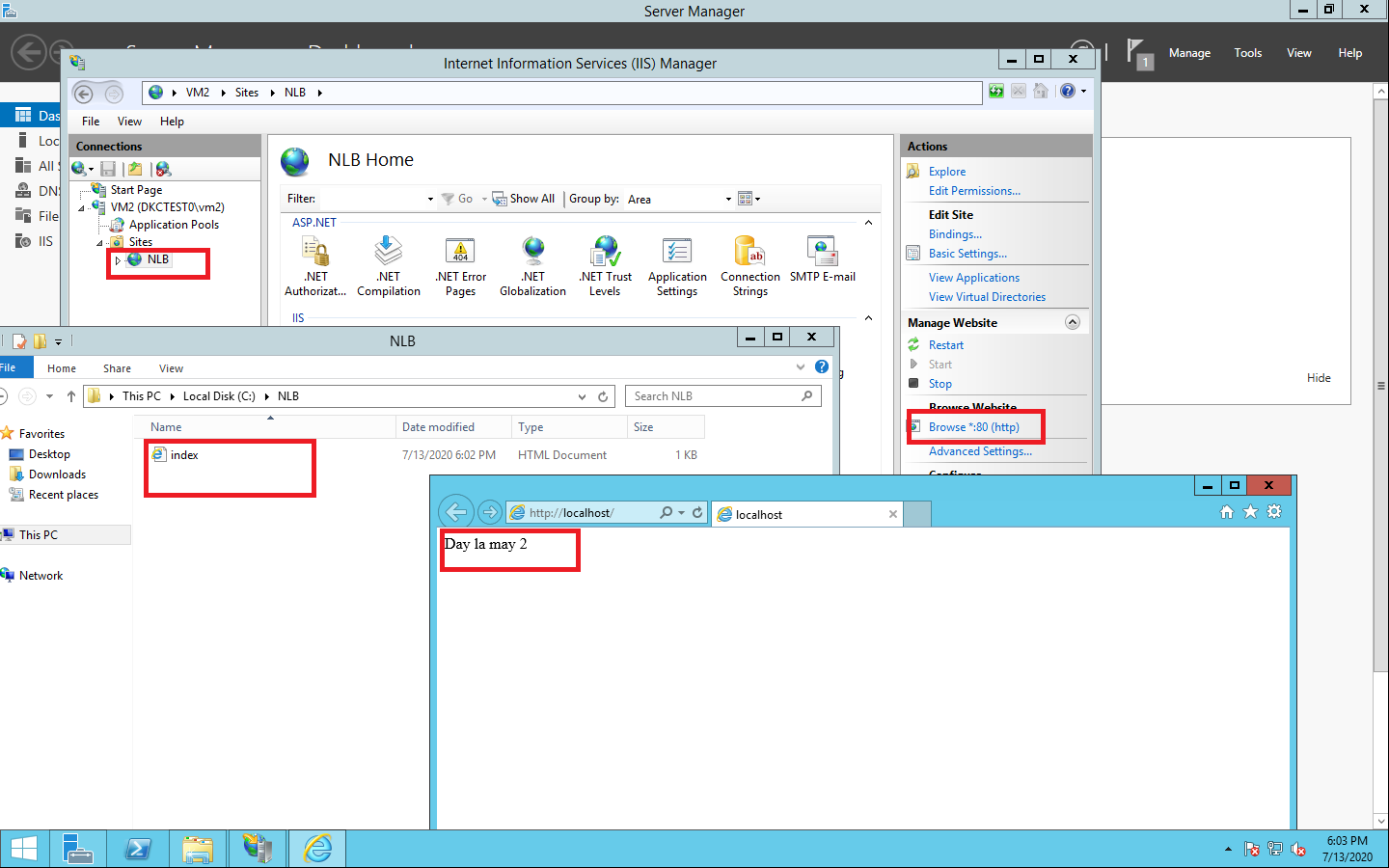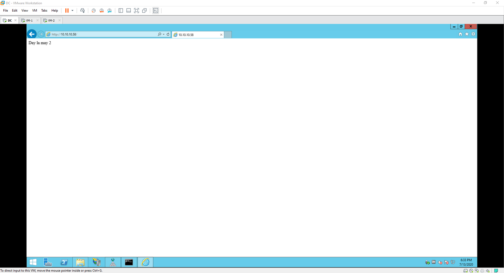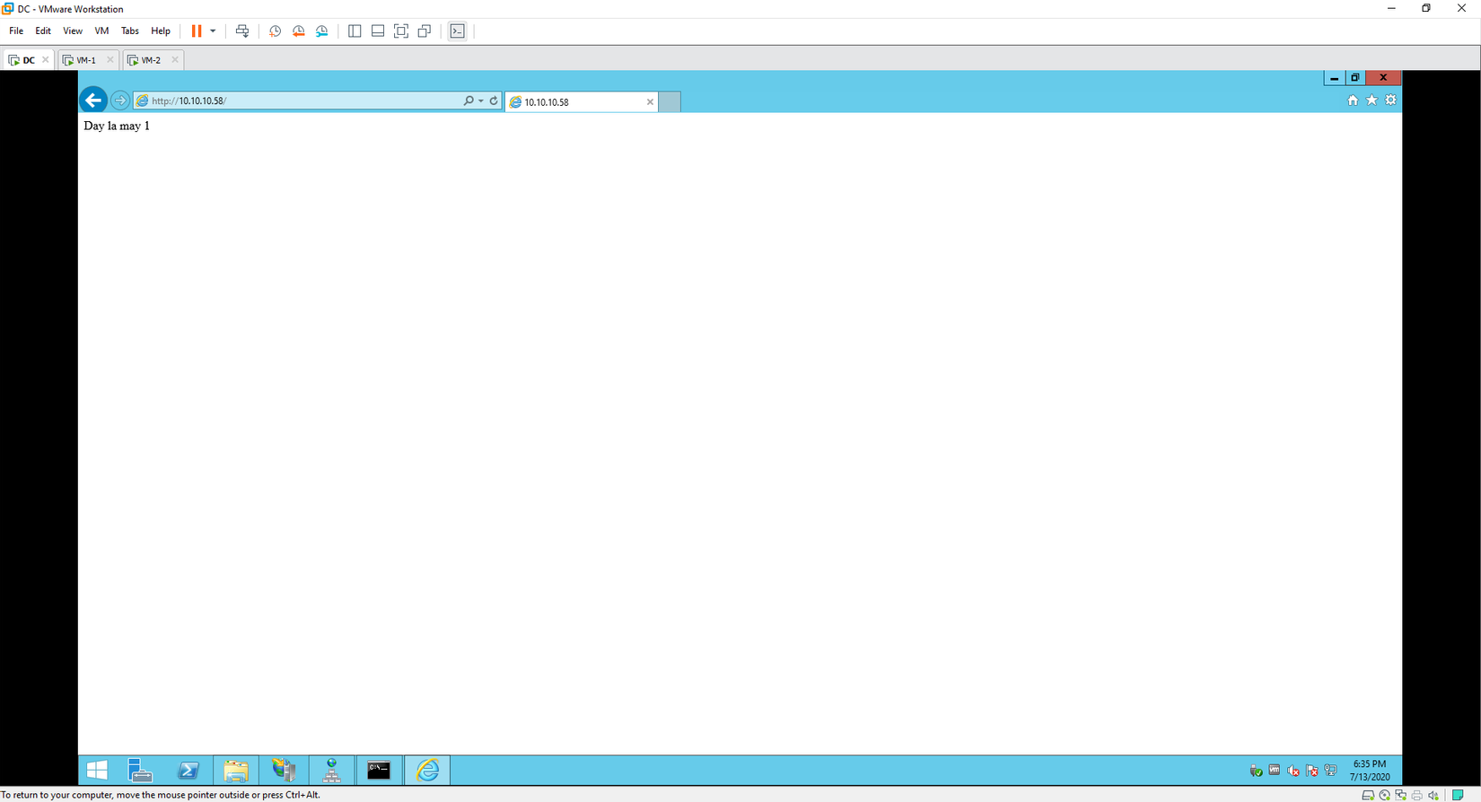 Cũng tương tự trên máy 2 mình tạo 1 website có nội dung "Day la may 2"