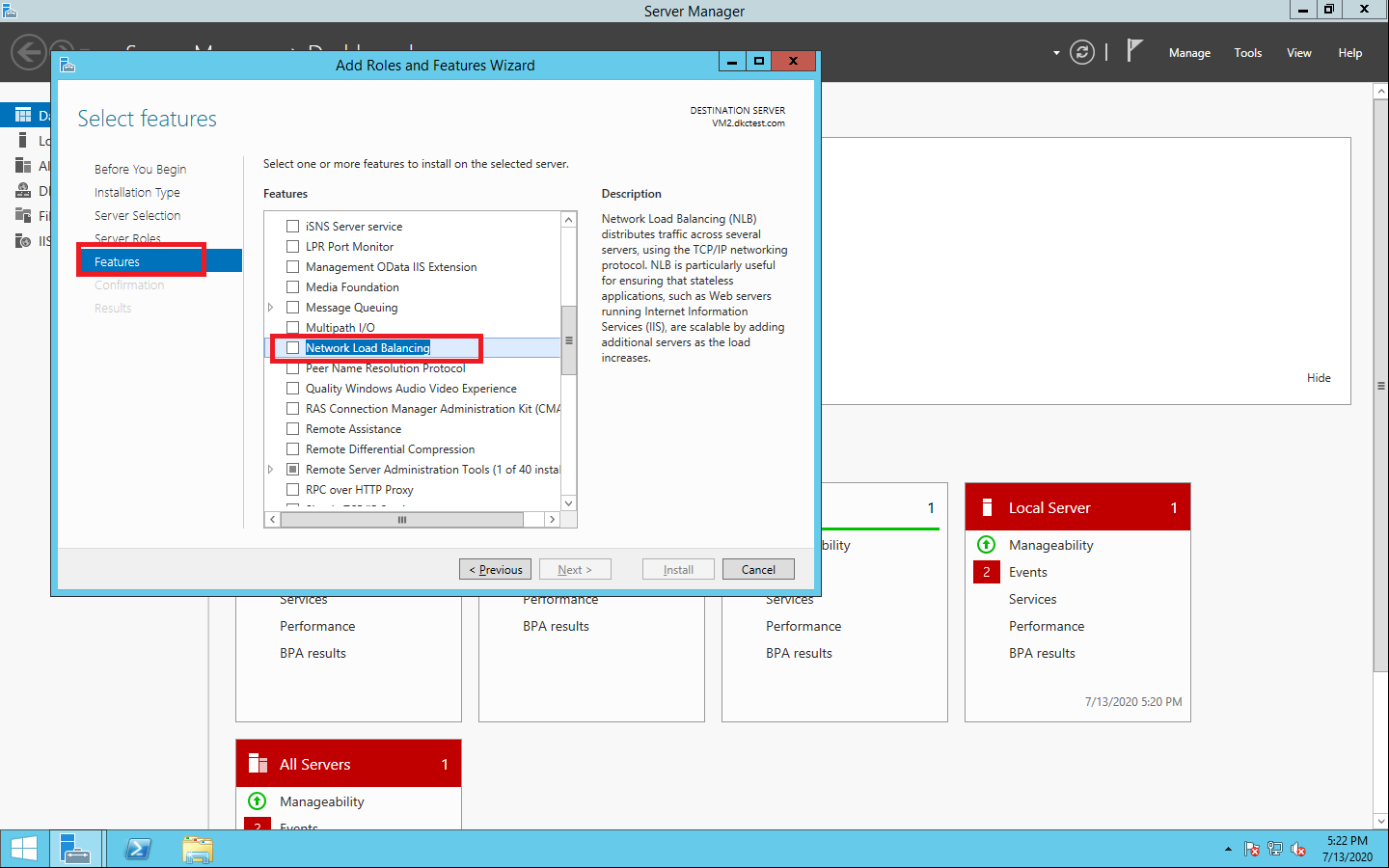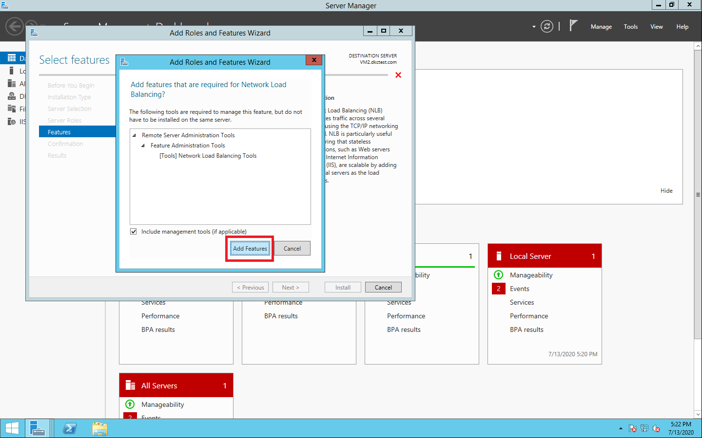 Bước 1: Cài đặt Network load balancing trên 2 máy ảo, VM-1 và VM-2.