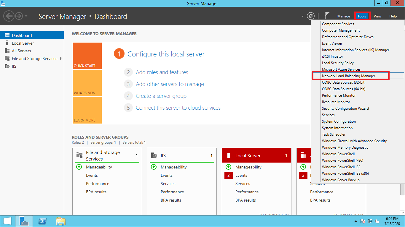 Đầu tiên trong menu Server Manager => chọn Tools => Network Load Balancing