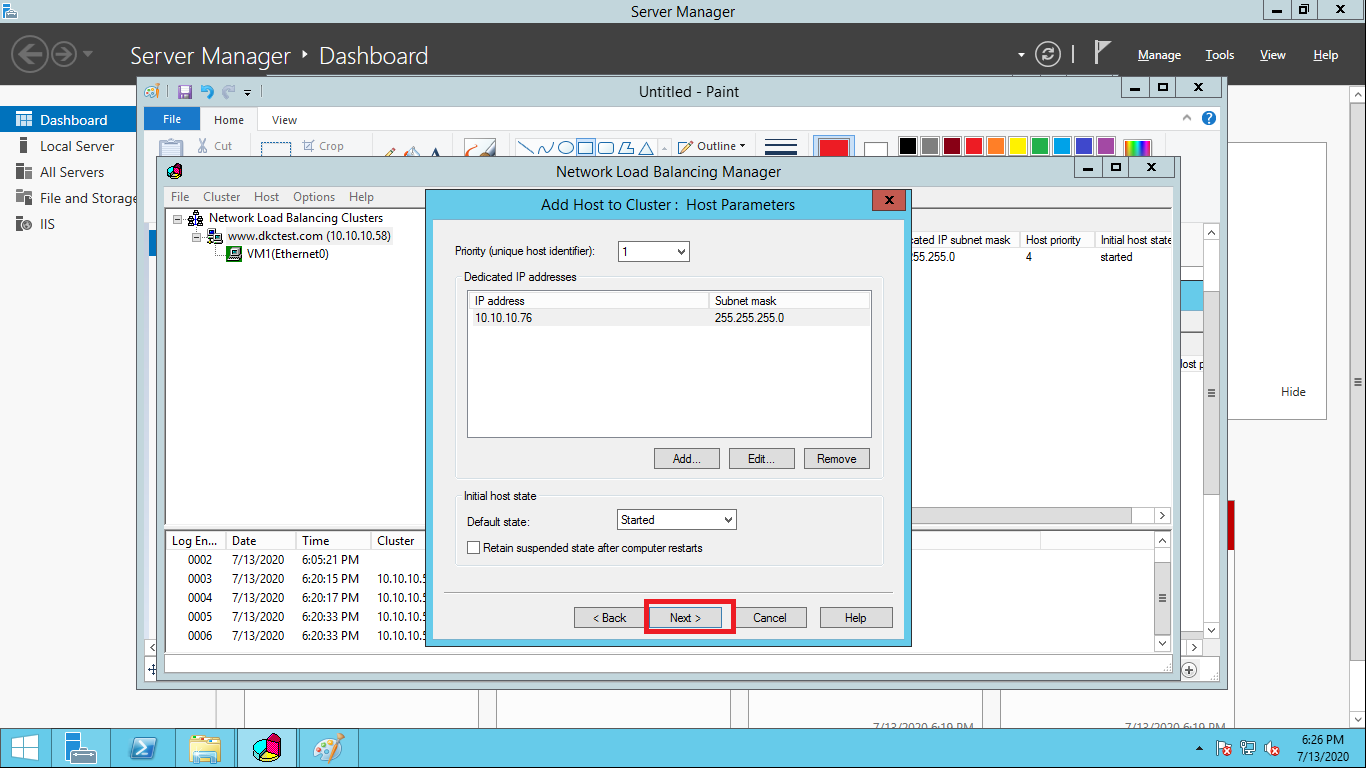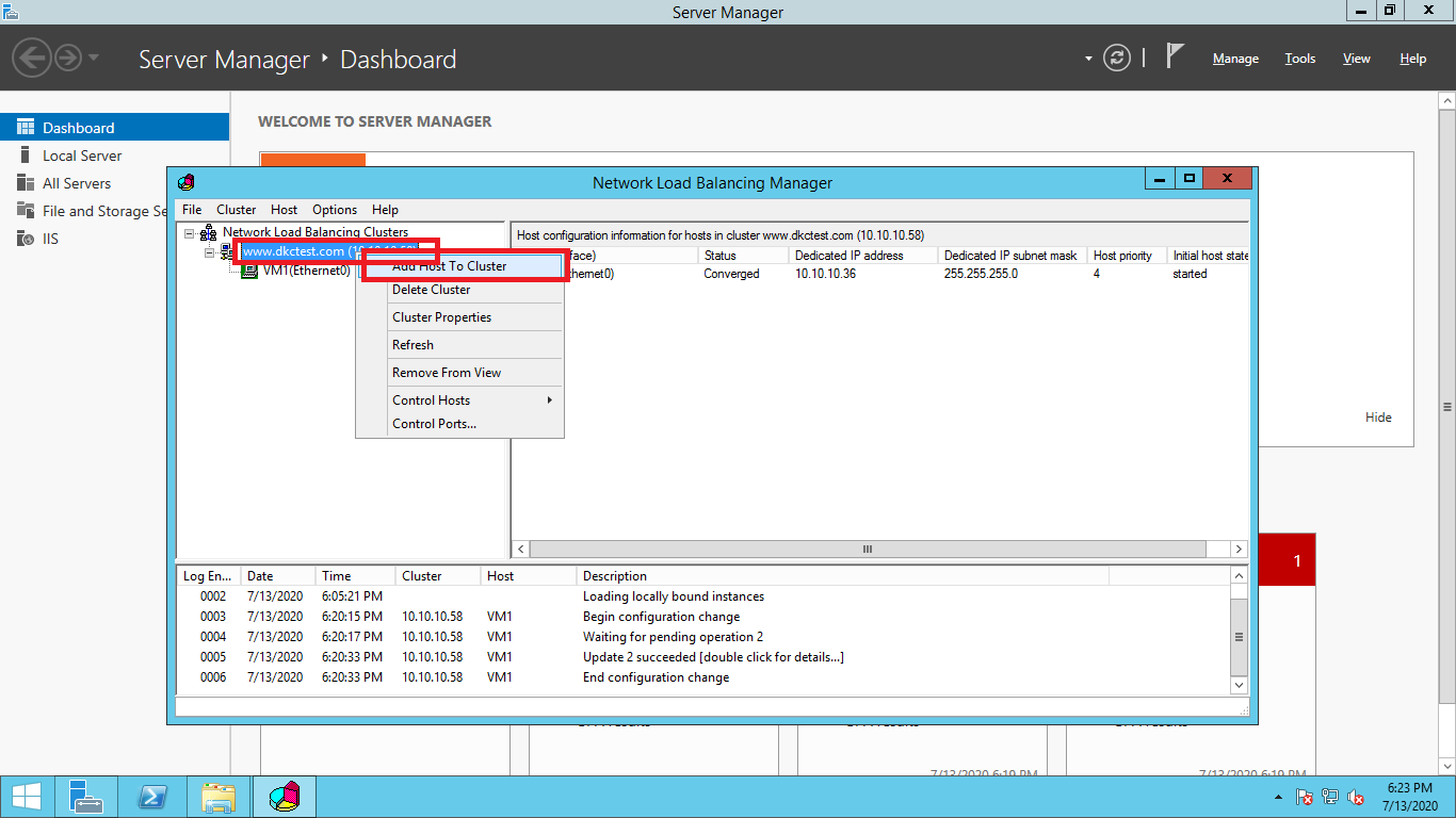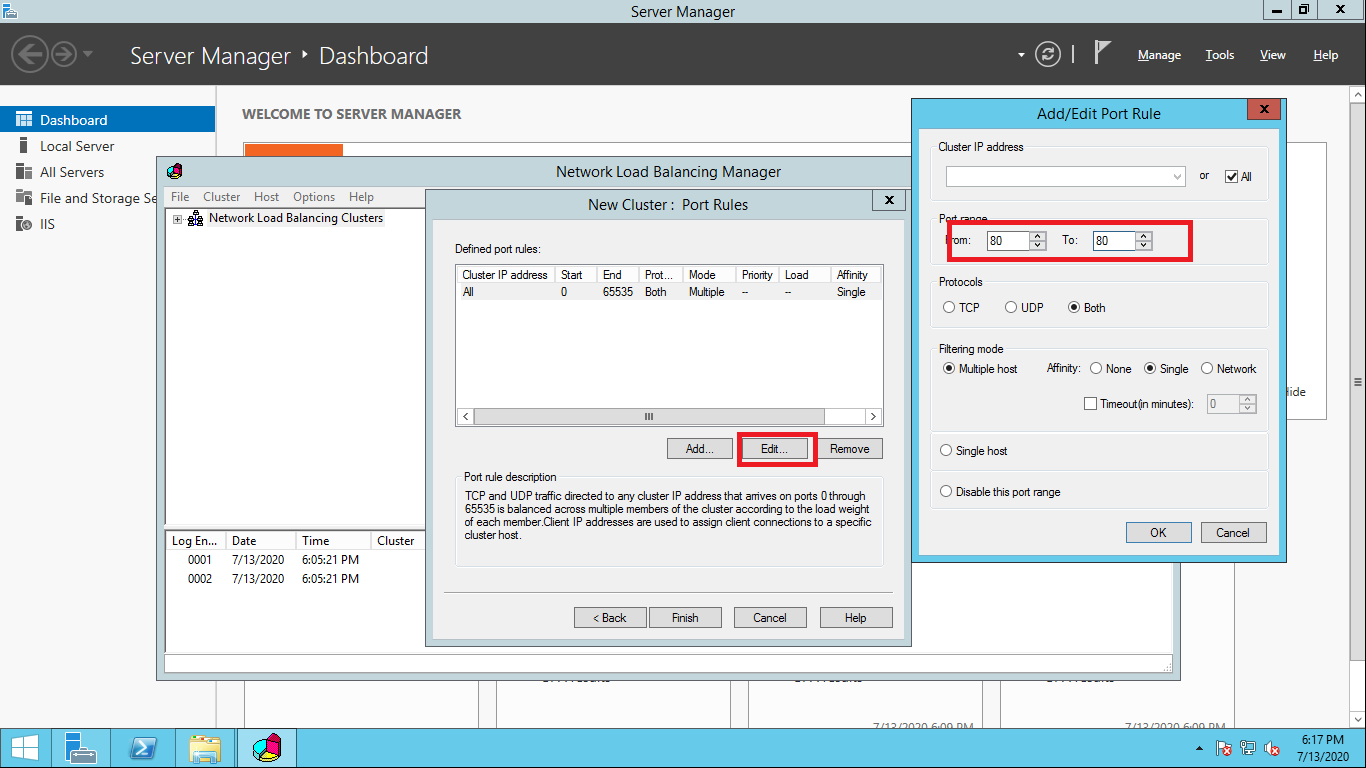 Bước 5: Cấu hình Network Load Balancing trên 1 máy ảo