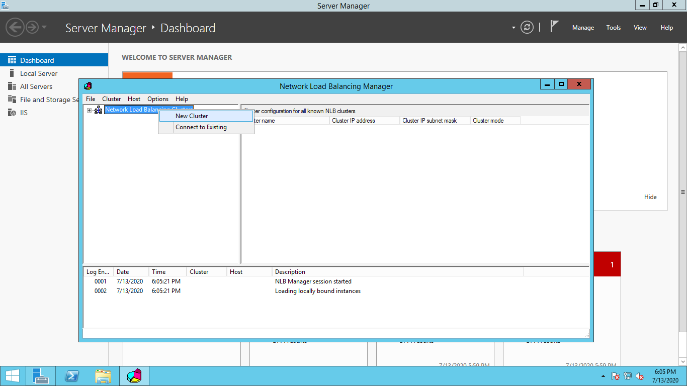 Trên cửa sổ Network Load Balancing => chuột phải chọn New Cluster