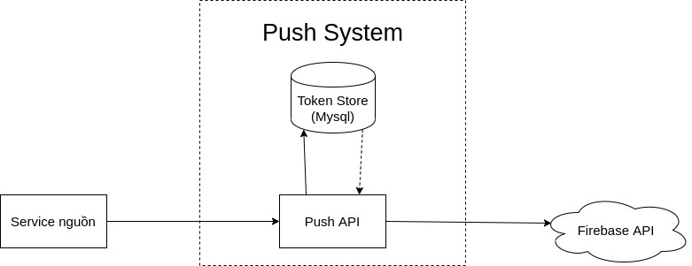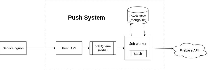 Phần Push API sẽ chủ yếu hứng traffic request push từ các service nội bộ. Để quá trình này diễn ra nhanh chóng và không bắt các service khác phải chờ thì flow đơn giản như sau: