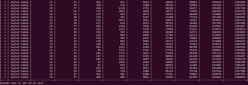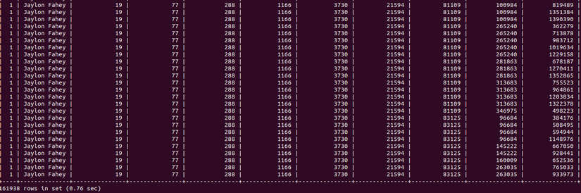 Và kết quả thì có vẻ cũng không tồi. Mất khoảng gần 7s cho truy vấn này, thực sự cũng là một con số chấp nhận được.