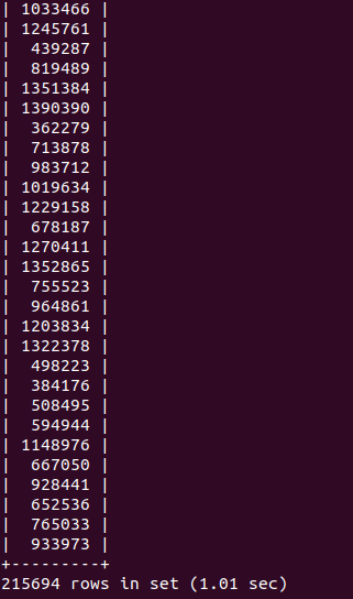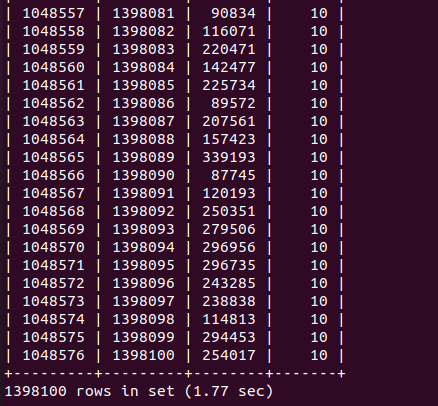 Tương đương với vòng lặp thứ nhất, ta có 1 câu query khá đơn giản, tăng dần đều từ 1 đến 10.