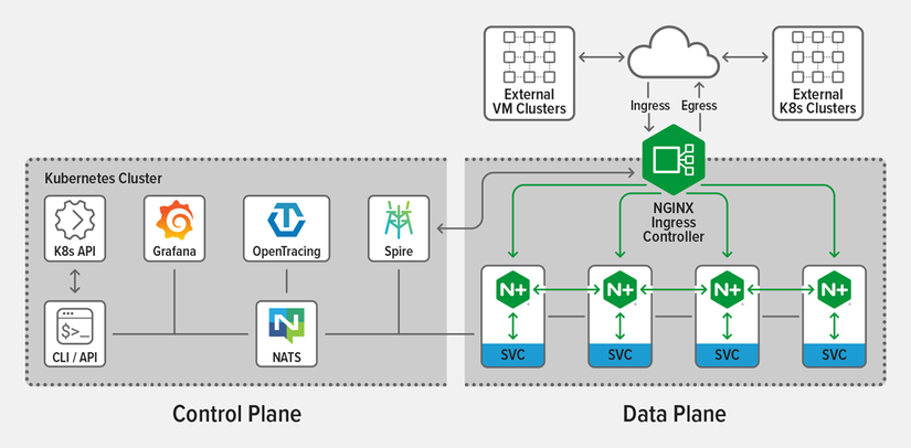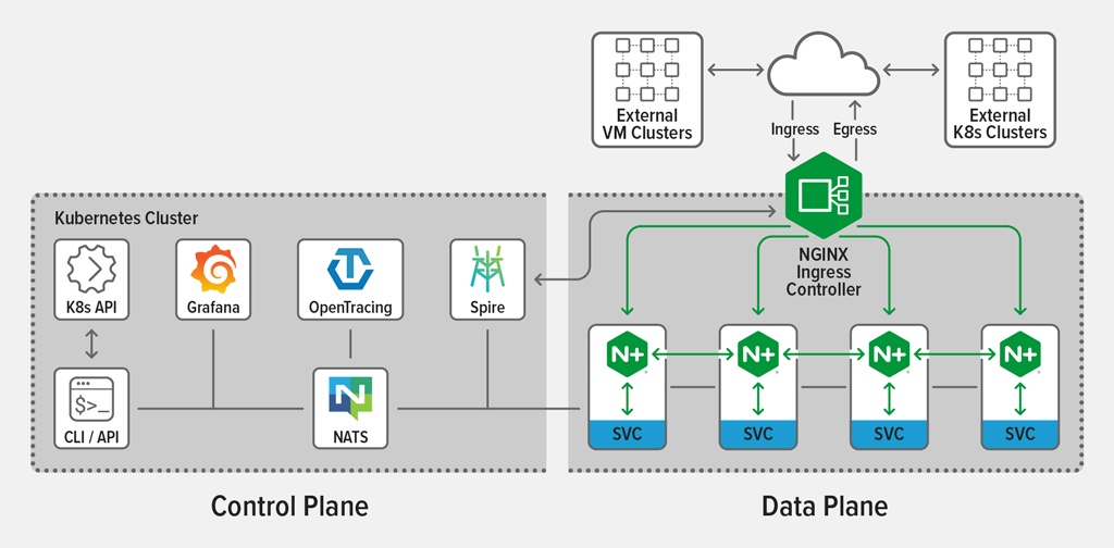 - Hybrid deployments - Nếu các service của hệ thống bạn không phải chỉ có trên Kubernetes mà còn ở bên ngoài. NSM cung cấp 1 tính năng là NGINX Ingress Controller để đảm bảo các mesh service (trong Kubernetes) có thể giao tiếp với các service bên ngoài và ngược lại