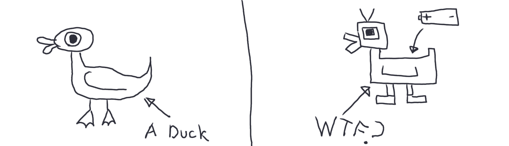Oh, test case đã thất bại. MechanicalDuck cần pin để kêu. Do đó, MechanicalDuck rõ ràng không thể thay thể Duck. Mặc dù giao diện của chúng có vẻ giống nhau, nhưng hành vi của chúng là hoàn toàn khác biệt. Vậy là việc sử dụng MechanicalDuck kế thừa Duck đã vi phạm LSP