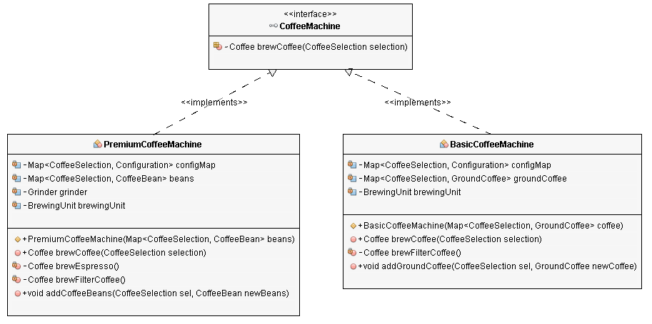public class BasicCoffeeMachine implements CoffeeMachine { ... }