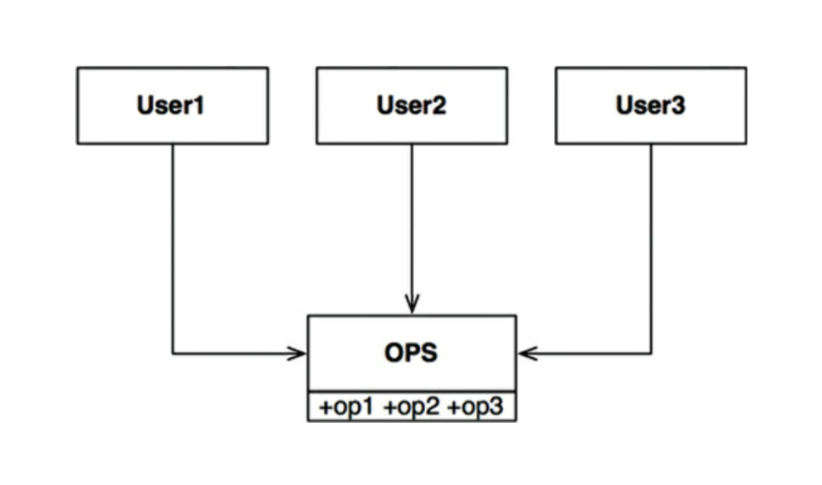 Trong tình huống được minh hoạ trong đồ thị trên, có một vài user sử dụng các thao tác của class OPS (đặt tên class là OPS vì nó viết tắt của operations ấy mà). Giả sử rằng người dùng User1 chỉ sử dụng method op1, User2 chỉ sử dụng op2, User3 chỉ sử dụng op3.