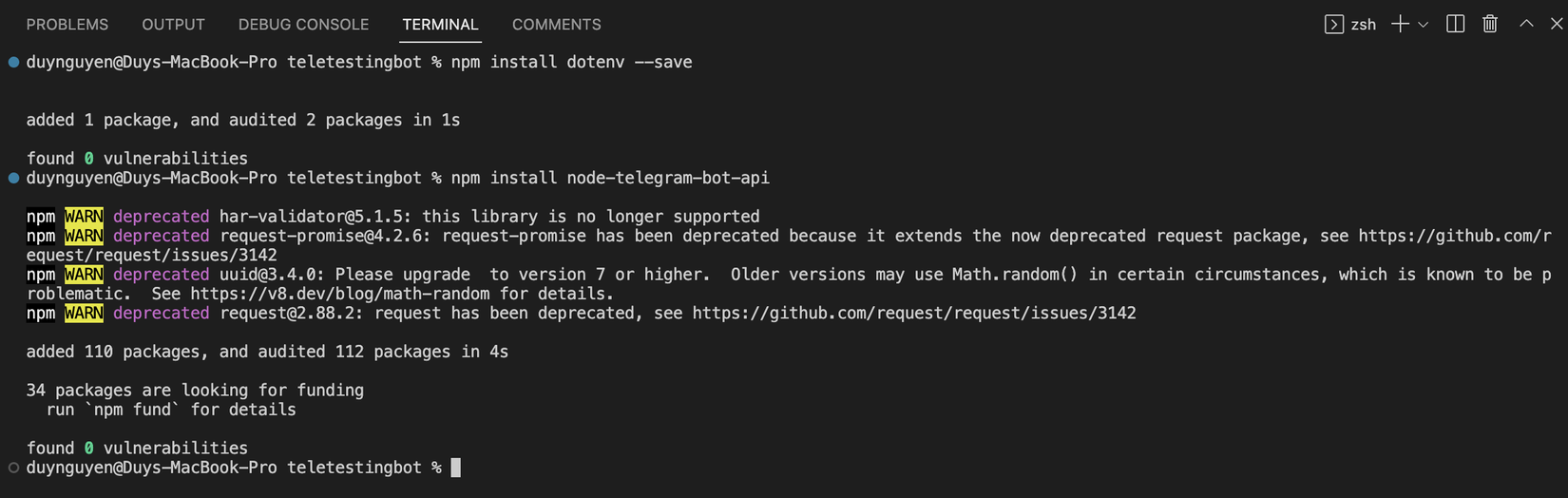 npm install node-telegram-bot-api