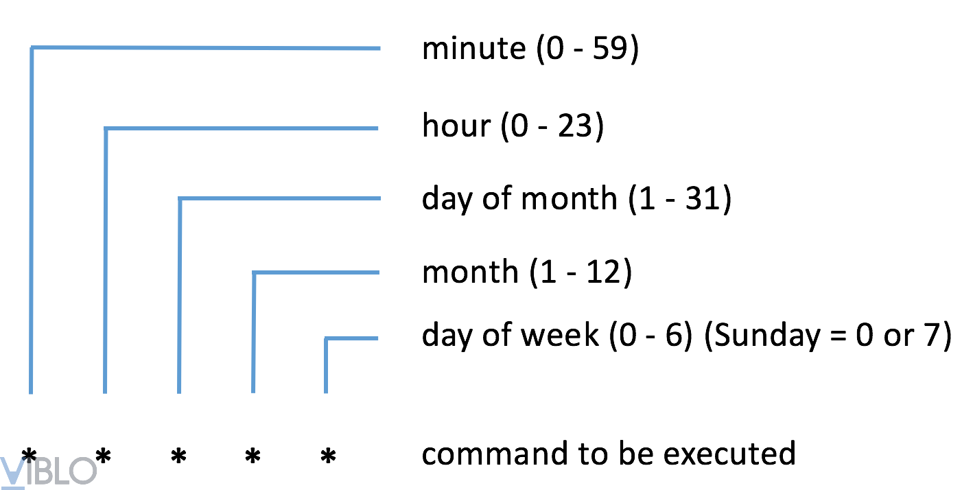 Một crontab file thường có 5 trường xác định thời gian (có thể là 6)