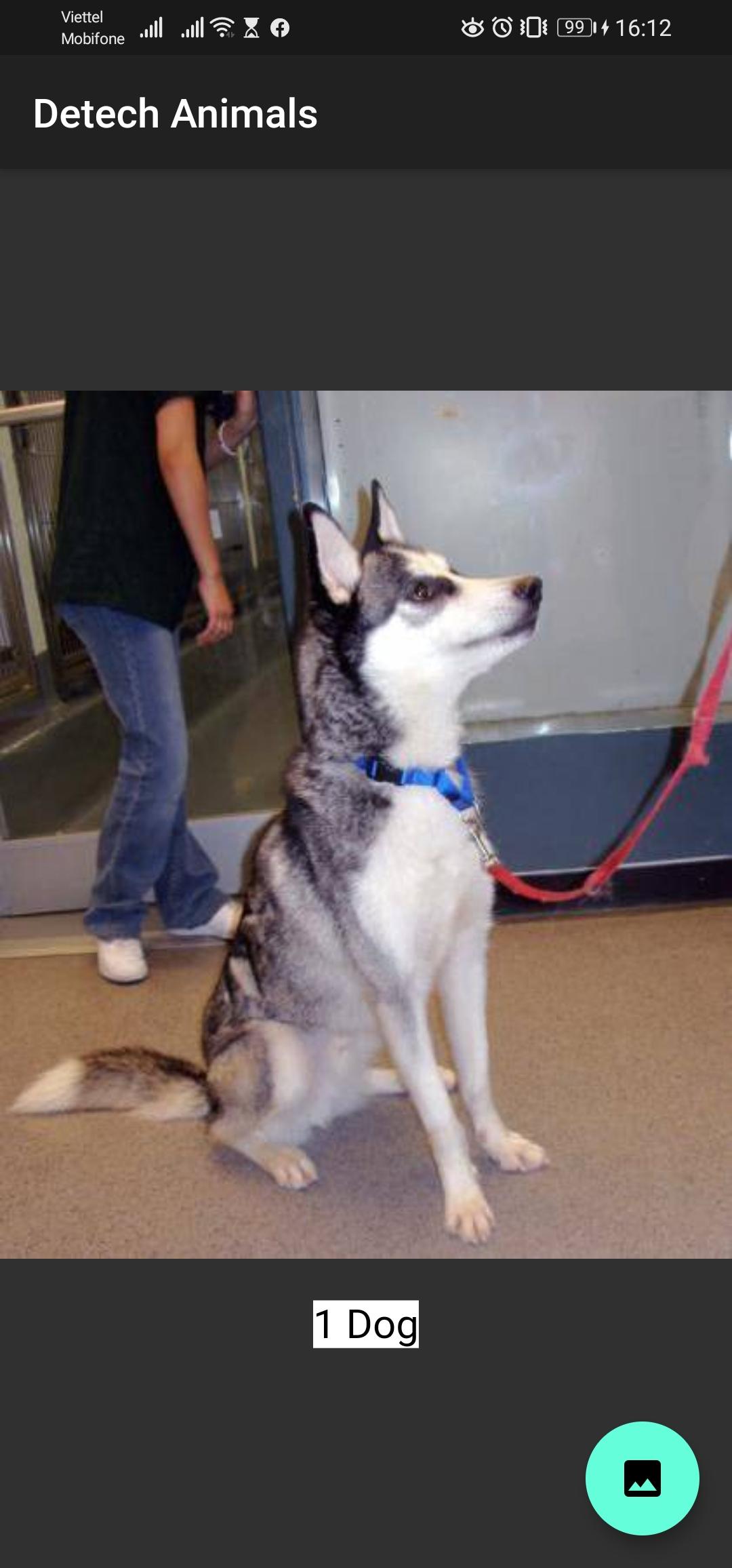 Chọn ảnh con chó thì sẽ thông báo là 1 Dog.