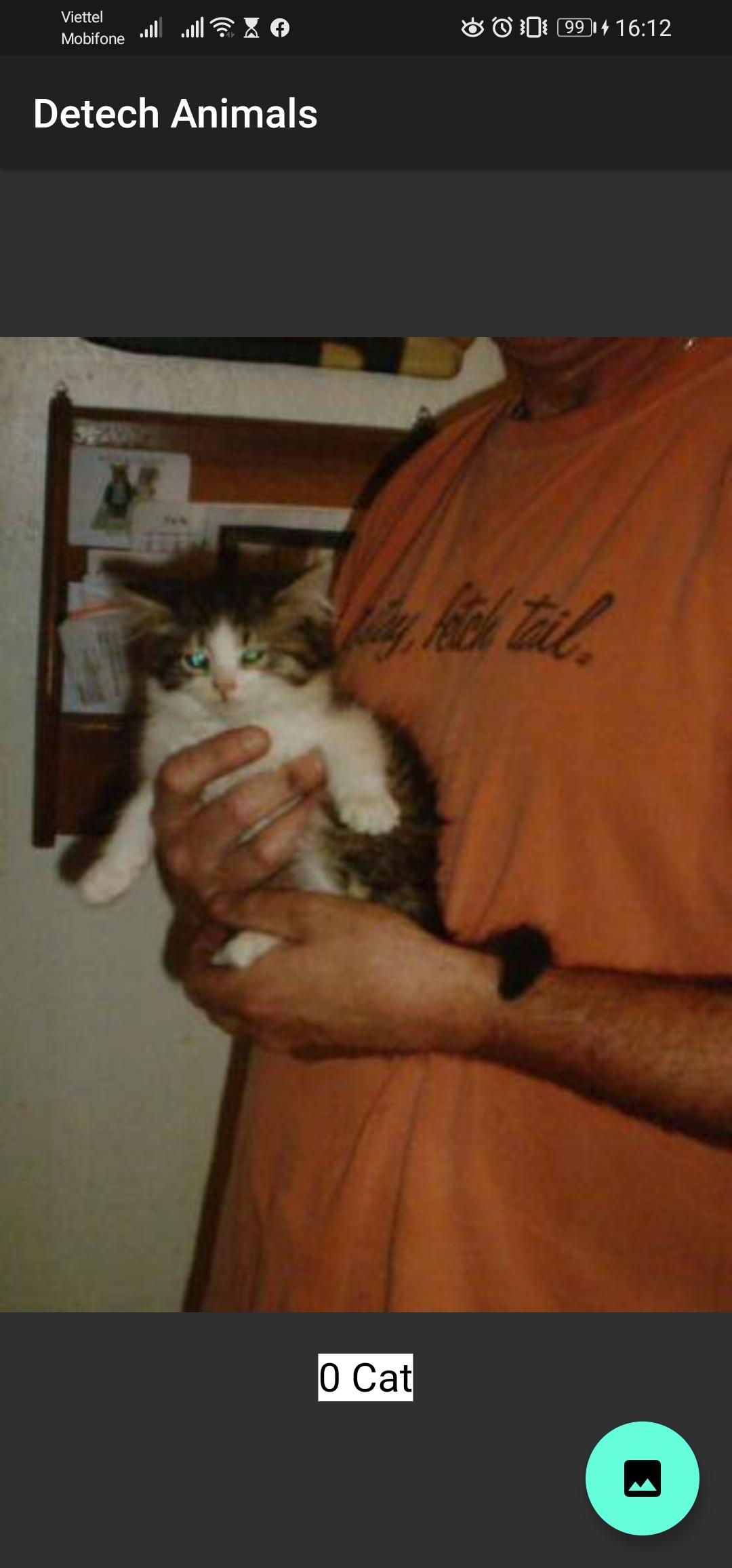 Chọn ảnh con mèo thì sẽ thông báo là 0 Cat.