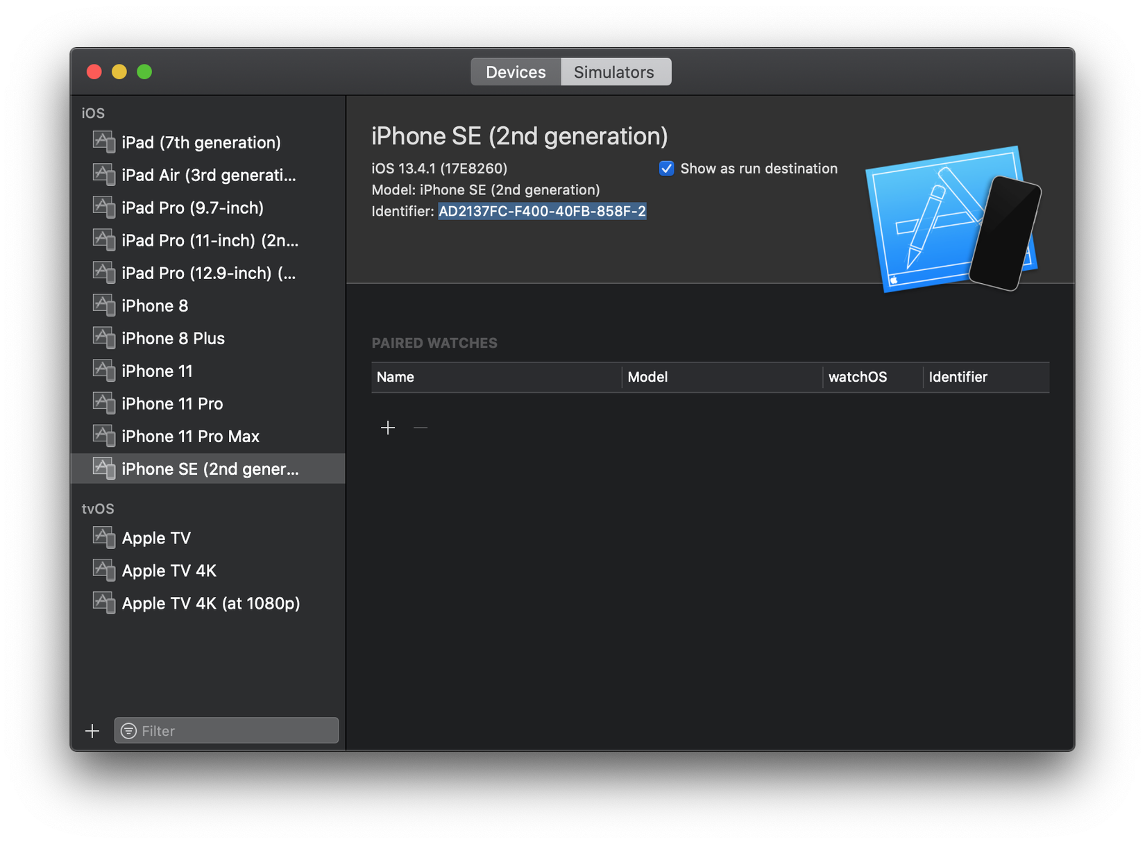 <device> đây là ID của máy ảo bạn có thể tìm nó ở trong xcode