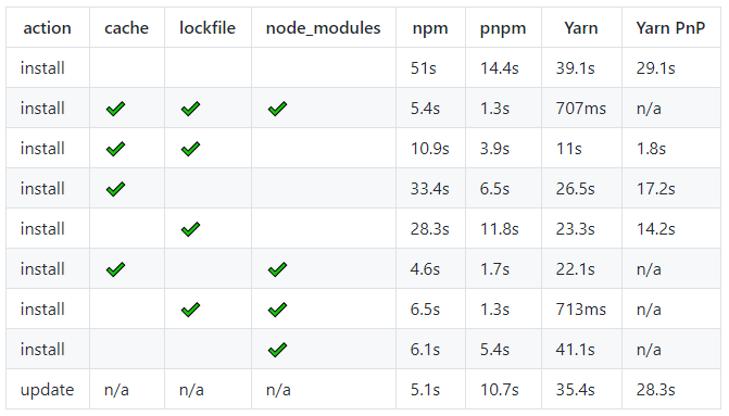 Dưới đây là là hình ảnh so sánh pnpm với các package manager khác:
