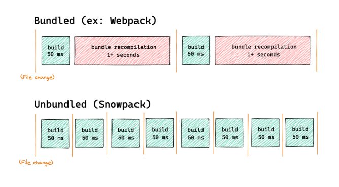 ts,babel,... và sau đó được tải riêng lẻ trong trình duyệt với các phần dependencies theo cú phápimportvàexport. Bất kỳ khi nào chúng ta thay đổi nội dung file, Snowpack chỉ cần build lại file đó -