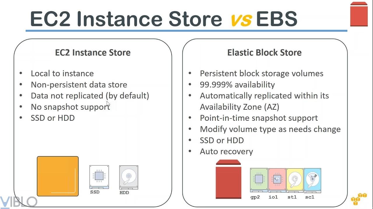 Tiếp đến khi nhắc tới EC2, chắc chắn phải nhắc tới một dịch vụ đi kèm đó là EBS - viết tắt của Elastic Block Store. Nó được sử dụng với EC2 như một set, như chân với tay, như thịt chó với mắm tôm. EBS là bộ nhớ (block store) mang tính vĩnh cửu được thiết kế để sử dụng kèm với EC2, mọi dữ liệu EC2 về cơ bản sẽ được lưu ở EBS. Thực ra EC2 cũng có nơi lưu trữ dữ liệu, tuy nhiên khi stop EC2 (như kiểu shutdown máy tính) thì dữ liệu này sẽ bị mất đi (kiểu bộ nhớ RAM) còn đối với EBS thì trái ngược, turn off server thoải mái dữ liệu vẫn còn nguyên, bảo sao được gọi là bộ nhớ lưu trữ mang tính vĩnh cửu.