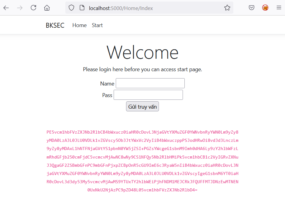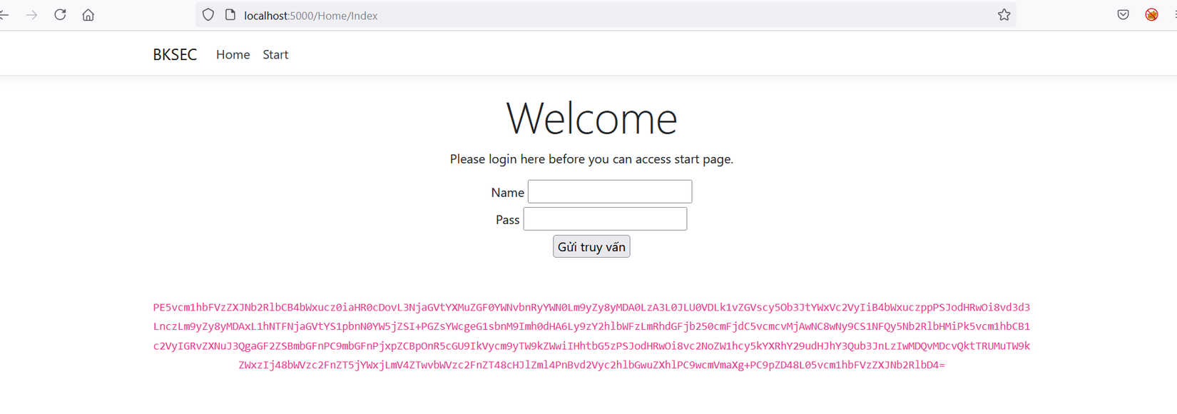Khi nhập name và pass bất kì ta nhận lại được một chuỗi được mã hóa base64. Vứt chuỗi này vào cyberchef thì được như sau
