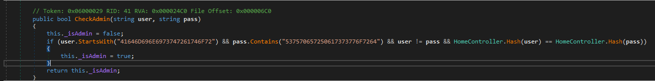 Để có thể đi theo hướng này ta phải pass qua được hàm CheckAdmin. Nhảy đến hàm này: