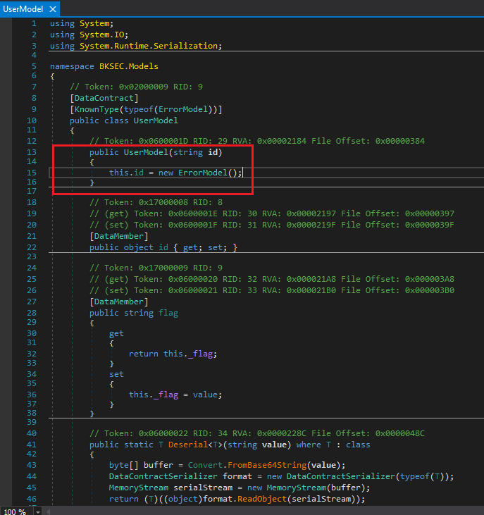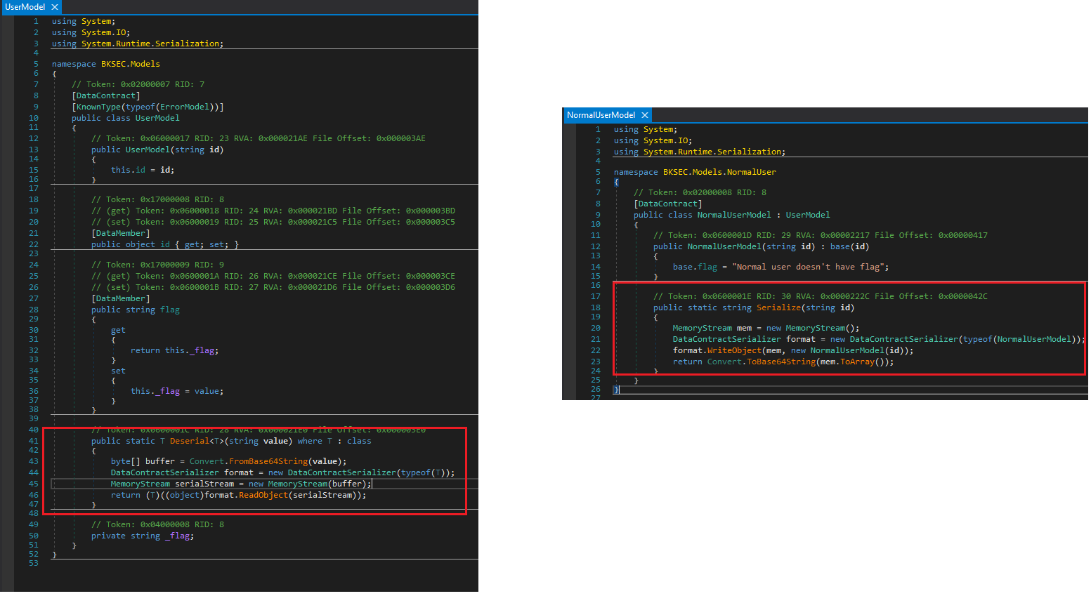 Giải quyết hàm này các bạn có thể dùng MD5 collision. Và lấy được flag. Tất nhiên đây cũng là một cách giải nhưng không phải cách mà chúng ta bàn đến hôm nay. Theo tiêu đề các bạn thấy đấy. Chúng ta sẽ sử dụng .NET deserialization để RCE server. Để ý đến bài sử dụng DataContractSerializer để thực hiện de/serialization.