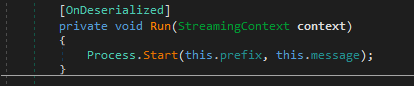 Method Run có thuộc tính là [OnDeserialized] có nghĩa là hàm này sẽ được thực thi sau khi deserialize. Có vẻ để có thể RCE được trên .NET cần rất nhiều điều kiện đi kèm. OK và bài phân tích của mình xong xuôi rồi. Các bạn có câu hỏi gì thì comment nhé. Demo cho uy tín này
