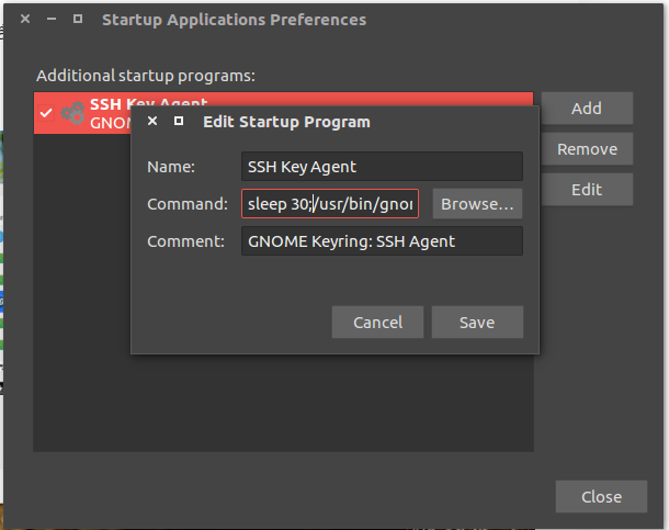 Nhưng nếu bạn vẫn muốn một số ựng dụng khởi động cùng thì sao. Không có gì khó khăn cả, ta sẽ cho nó delay khởi động sau khi hệ điều hành khởi động song. Chọn ứng dụng cần khởi động, edit và thêm câu lệnh sleep 30 vào trước command
